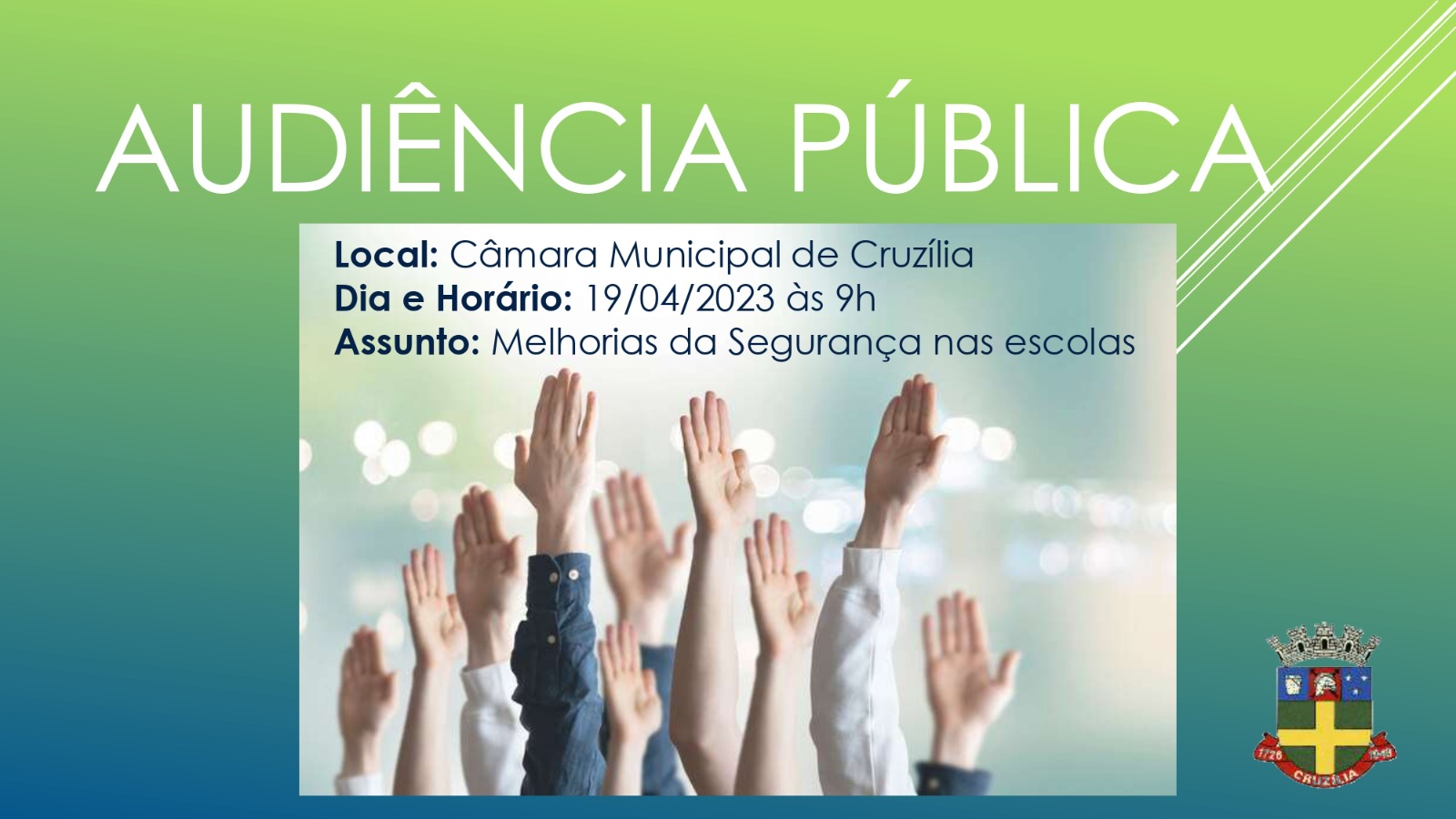 Divulgação do link da Audiência Pública sobre Segurança nas Escolas realizada no dia 19/04/2023.